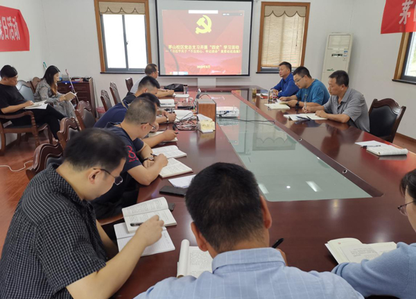 8月12日,校区党总支在校区行政楼会议室开展集体学习《习近平关于“不忘初心、牢记使命”重要论述选编》,由于疫情防控,学习采用线上+线下形式。总支副书记汤波带领大家共同学习了“中国共产党人的初心和使命,就是为中国人民谋幸福,为中华民族谋复兴”主题。总支书记汪国好强调,每一位同志要认真学习“四史”即党史、新中国史、改革开放史、社会主义发展史。要牢记共产党人的使命,每位同志不仅要认真学习,还要不断总结。