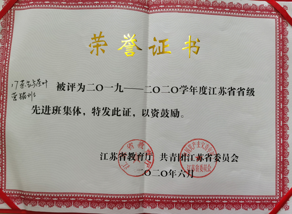 日前,江苏省教育厅、共青团江苏省委表彰了2019-2020学年度江苏省普通高校省级先进班集体,我校17茶艺与茶叶营销班荣获省级先进班集体荣誉称号。本次受表彰的先进班集体是我校通过层层选拔、推优遴选出的。受表彰的班集体,班级学风正,团体凝聚力强,活动丰富,是全校班级学习的榜样。