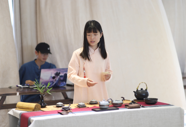 本次比赛将中国传统节日端午节和中华传统文化茶文化充分结合,比赛要求各小组设计以端午为主题的茶席设计。各小组焕发创新思想,以卓越的创意通过茶、茶器、茶席、茶空间等相关元素的巧妙组合和系统设计,将茶知识、茶礼仪、茶艺术等方面与端午节习俗融合。作品《茶·莲》将茶席设计成龙舟的样式,加入莲的元素,设计者寓意表达屈原的清风亮节;作品《粽茶》,取荷叶为席,将茶器置于荷叶上,就好像是粽叶包着粽心一样,在此处饮茶,能让人感受到午后的安详,表达设计者以茶会友、端午安康之意。作品《火红的茶》,以红色桌旗为底,绿色品茗杯环绕盖碗,寓意在红红火火的大地上,祖国人民团结在一起,繁荣昌盛之意。经过小组成员讲解、大众评委投票,最终,作品《茶·莲》荣获本次比赛一等奖。本次大赛既弘扬了中华优秀传统文化,又提升了学生职业技能。