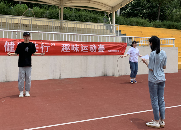 此次团日活动分为三项,乒乓球接力、你比我猜、单人跳绳快问快答,主要采取积分制进行计分。有的项目需要团队成员两两配合完成,如乒乓球接力,两人相隔50米往返一个来回即为完成比赛,以用时时长作为积分标准。你比我猜项目,两组同时进行,裁判给出相应的题卡,一人比划一人猜,在相同时间内以猜出个数为积分标准。有的项目考查队员的运动能力和反应力,如单人跳绳快问快答,参赛队员边跳绳边答题,裁判按照生活类、防“疫”类、茶相关知识类等给出题目,同一时间内跳绳数量多且答题多者胜。最终,18茶艺与茶叶营销的王双、翁佳欣团队以优异成绩获得本次比赛一等奖。