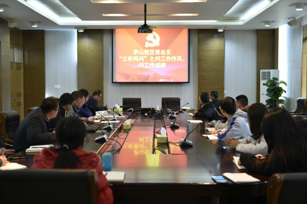 11月27日,校区党总支在图书馆会议室开展“三听两问”之问工作作风、问工作成效,总支书记汪国好要求,接近年底,每位党员要认真检视一年来自己的工作作风和工作成效。班子成员分别就各自的工作作风和工作成效进行了汇报,重点说明了工作作风中还存在的问题,总结了一年来的工作成效,对各自工作中还存在的困难进行了梳理,说明了下一步的工作目标。