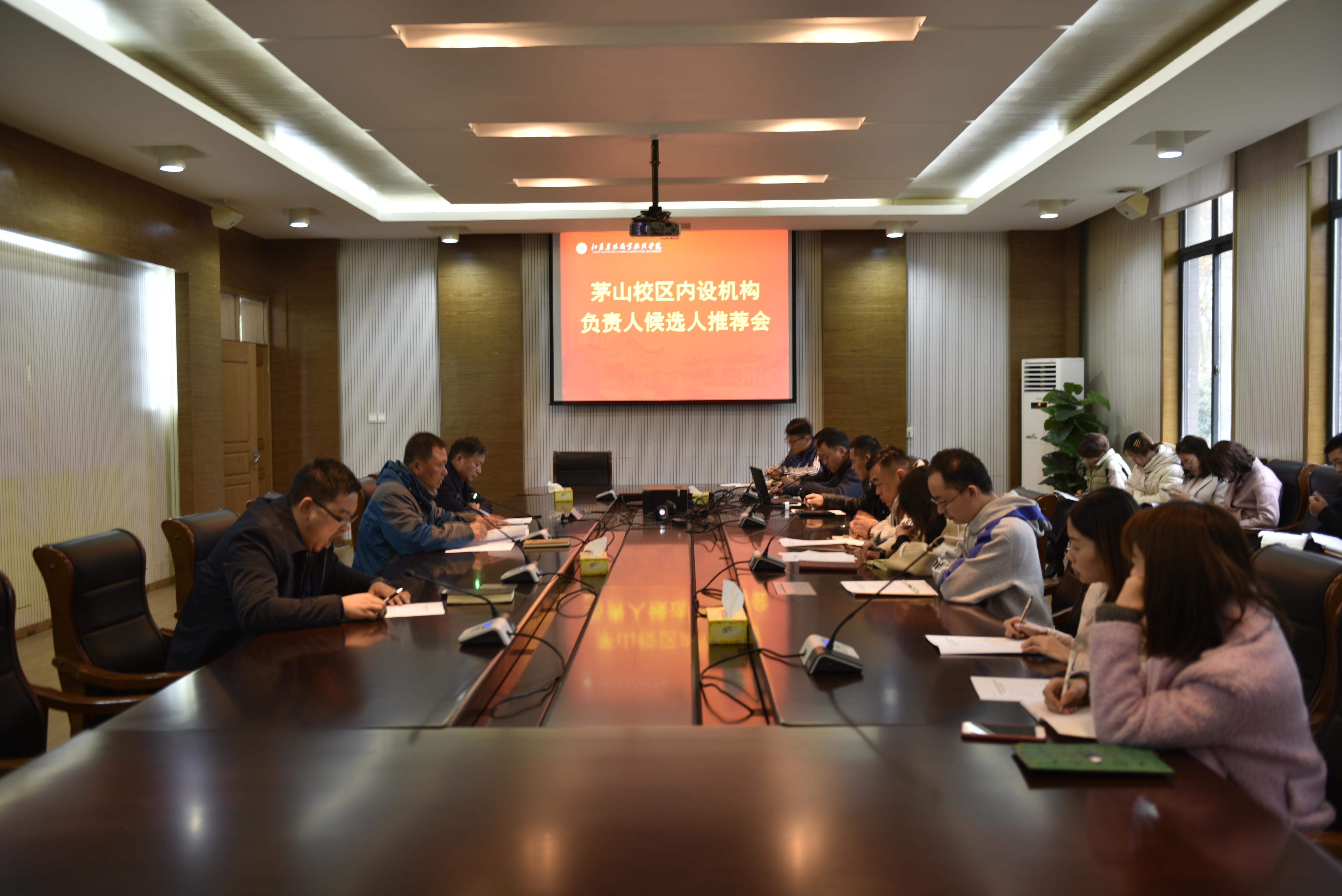 根据《江苏农林职业技术学院二级单位内设机构负责人选拔任用管理办法》相关规定,校区于11月25日于图书馆会议室召开茅山校区内设机构负责人候选人推荐会,校区全体教职工参加会议。