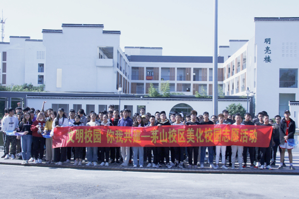 为创建和谐、文明、美丽的校园,11月18日中午,校区团委组织100余名志愿者开展了以“文明校园、你我共建”为主题的美化校园环境的活动。