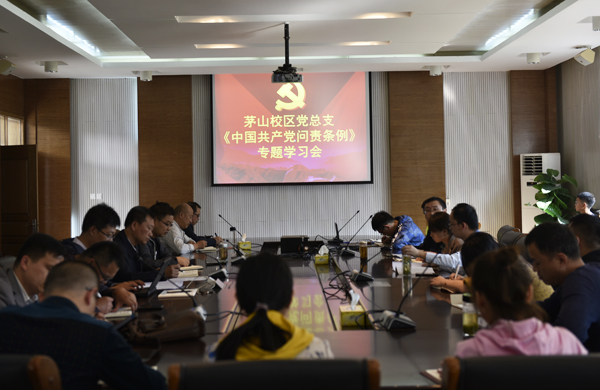 10月23日,校区党总支在校区图书馆会议室开展《中国共产党问责条例》学习。具体学习了修订后的《中国共产党问责条例》,坚持维护以习近平同志为核心的党中央权威,问责工作要依法依规,实事求是,党组织和领导干部要敢于把自己摆进去,《条例》强调问责终身制,对于重大错误,退休后同样问责。通过对《条例》的学习,校区全体党员都保持高度的政治站位,严格自律。