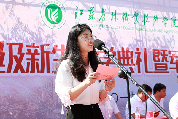 军训教官代表董琐、教师代表傅浩兰,在校生代表杨淑涵和新生代表孙潜分别发言。