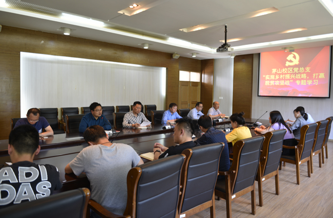 5月29日下午2:00,校区党总支在校区图书馆开展“实施乡村振兴战略,打赢脱贫攻坚战”专题学习,会上重点学习了习近平总书记提出的“两不愁、三保障”的相关内容。通过本次学习,每位党员同志都深刻认识习近平总书记提出的“打赢全面脱贫攻坚战”的要求,积极发挥高校一线教育工作者在赢得脱贫攻坚战中的战斗堡垒作用。