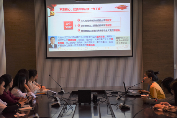 活动开始,学生党支部书记朱锦为各党员、积极分子带来了专题党课《不忘初心牢记使命》。朱书记从“大学生的初心是什么”切入,深刻地讲解了共产党人的初心。她从不忘初心“姓什么”、“为了谁”展开。她讲到,中国共产党从诞生之日起就鲜明地把马克思主义写在了自己的旗帜上,开宗明义确立了坚持马克思列宁主义的指导思想;“为了谁”,是一个立场问题,也就是“站在谁的角度、替谁说话、为谁办事”的问题。我们党来自人民、为了人民、依靠人民,全心全意为人民服务是我们党的根本宗旨,人民立场是我们党的根本政治立场,讲共产党的初心,为人民服务应当是永恒不变的初心。最后,她又回到大学生的初心,结合大学生的实际情况来进行了剖析。