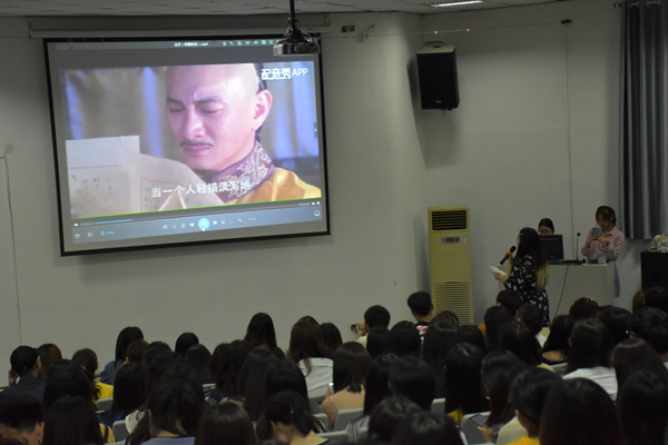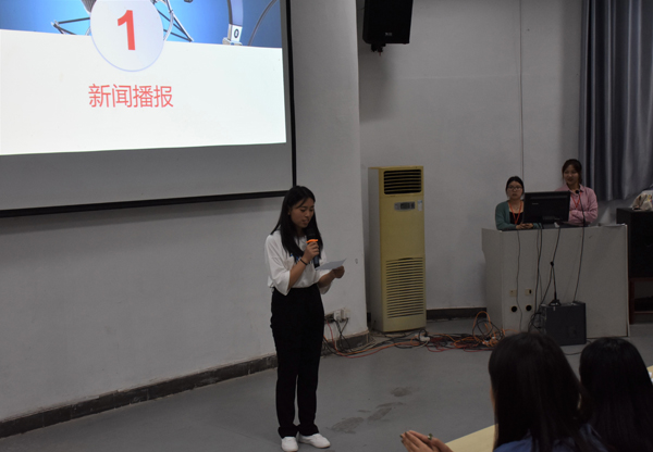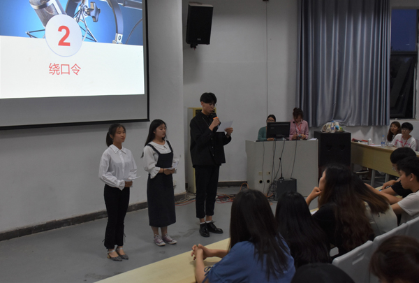 决赛分为三个环节:指定新闻播报、朗诵绕口令和即兴视频配音。指定模拟新闻主持人环节,有模拟时政类、军事类、体育类等各类场景的,形式多样的模拟现场凸显了选手们丰富的经验和流利的话语。绕口令环节展现了选手普通话的标准程度,视频配音环节选手当场抽签,根据所抽中的视频当场配音,考察的是选手们的应变能力。通过紧张的角逐,最终,18旅游管理班唐茜婷荣获本次大赛“金话筒”奖。