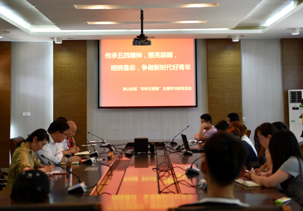 为深入贯彻落实习近平新时代中国特色社会主义思想和党的十九大精神,进一步加强对新疆籍少数民族学生的“思想引领、价值塑造、调整适应、社会实践和指导服务”,深化意识形态领域反分裂反渗透斗争,切实维护我校安全和谐稳定,5月23日下午,校区于图书馆会议室召开了“农林石榴荟”主题教育学习会议。来自经济与人文学院的教师和校区的40余名2018级新疆籍学生、辅导员、校区领导及新疆内派教师参加了此次会议。会议由校区管委会副书记汤波主持。