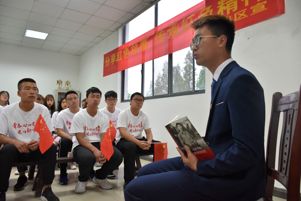来自机电一体化2班的张福同学出生在宁夏,从小他就听老一辈的人讲着红军长征到宁夏的故事,他讲到,1935年10月5日晨,红军从界石铺出发,行程60里,到达宁夏西吉县境的公路,下午过葫芦河,跨越一道南北走向的古长城,进入单家集。毛泽东、张闻天、王稼祥、博古等中央领导人当晚宿营于单家集,为了尊重回民的风俗习惯,不多占用民房,绝大部分红军战士都在露天宿营,受到当地的回民群众热烈欢迎,也正是红军这种优良作风,留给了宁夏当地百姓良好的印象,由于当时国内的形势,所以红军还得接着转移,但是,在宁夏地区已经深深埋下了红色的种子,这对后来全国的解放,有着深刻的影响。来自各班级的其他5位同学分别分享了《毛委员送毛衣》、《刘胡兰》、《八女投江》等故事。