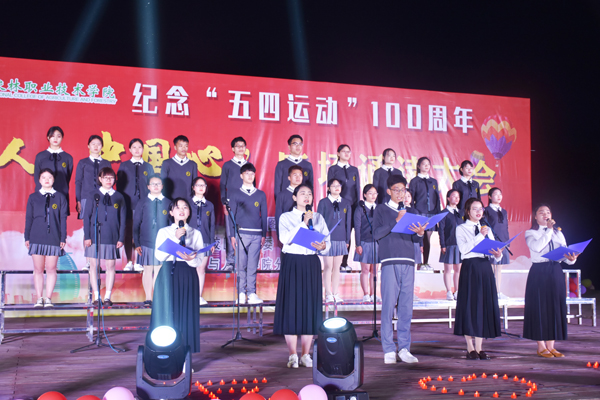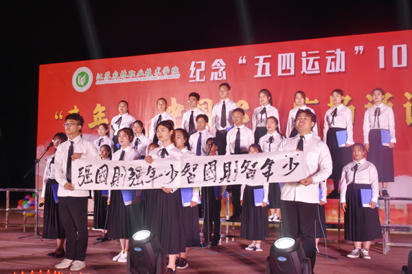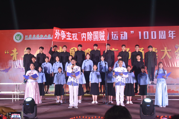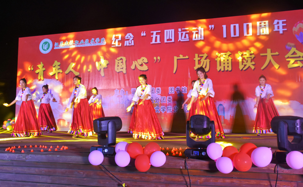 4月24日晚,无数年青人激昂的声音在回响:“五四的精神,激励我们成长。我们要让世界知道,中国有我们,中国有青年”、“少年智则国智,少年强则国强”!这是江苏农林职业技术学院茅山校区225名青年学子7个团队集体诵读爱国诗篇发出的呐喊。活动现场,500余名师生齐聚江苏茶博园茶道广场,以广场诵读这种特别的形式共同纪念五四运动100周年。 《我的祖国》、《青春中国》、《五四,我们的节日》、《我骄傲,我是中国人》等爱国诗篇响彻云霄,青年人的倾情诵读点燃了满场观众沸腾的热血,迎来了阵阵掌声。此次广场诵读大会是我校图书馆、团委、语委主办的以“阅读成长,学习强国”为主题的第九届大学生读书节系列活动之一,也是深入实施中华经典诵读工程而首次举办的大型集体诵读活动,由校区分团委、经济与人文学院分团委承办。诵当代经典,抒爱国情怀,扬五四传统。本次大赛,营造了浓郁的经典诵读氛围,进一步激发了青年学生的集体主义情怀与蓬勃的爱国热情,传承弘扬了五四精神,充分彰显了中华语言与文化的力量。