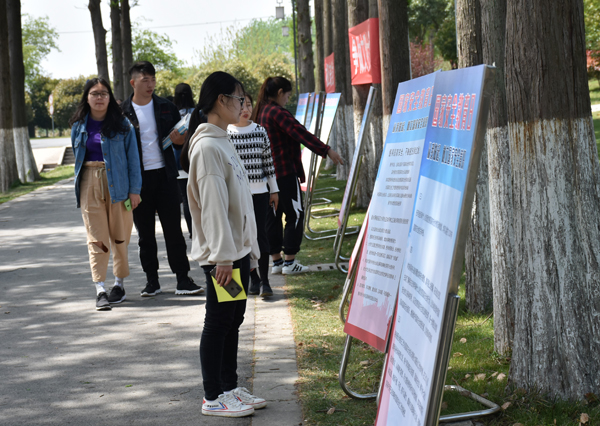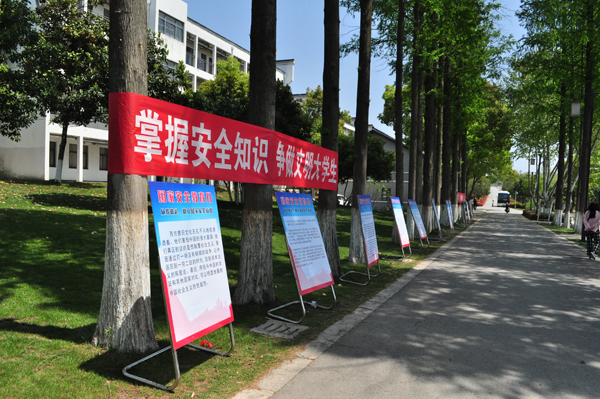 “掌握安全知识争做文明大学生”、“规范校园安全管理构建校园安全文化”,为全力做好主题宣传,积极营造浓厚的校园安全氛围,校区在校园主干道悬挂横幅提醒学生增强安全意识,采用展板、知识竞答形式让学生了解国家安全知识,组织学生到机房现场观看“真实案例展示”来指导学生积极运用安全教育平台,给大学生敲响国家安全问题的警钟,让每个学生都对保护国家安全有了一定的认识。