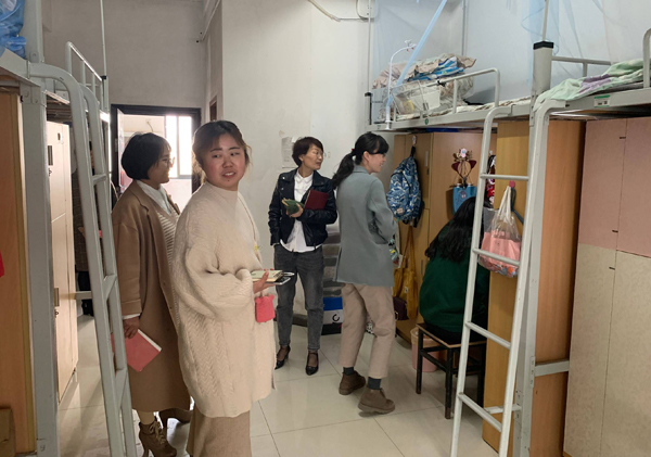 会后,校区党员分两组进行安全大检查,分别对校区学生宿舍、食堂、水泵房、配电房等重点安全区域进行实地检查,并详细查看了安全检查记录台账。