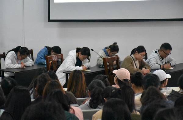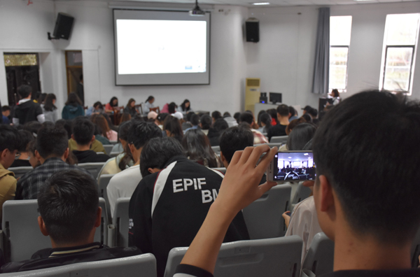 本次比赛分为团体赛和个人赛。赛场上,选手们聚精会神,细致思考,聆听着主持人所提供的每一个信息,安静的空气里,仿佛听到了大脑高速思考发出的嘀嘀声,比赛氛围紧张又刺激。观众们也自备纸笔,认真听写,不时讨论。最终傅瑜、黄婷、黄晴、吉胡、许佳琦、韩笑六位同学的组合获得了团体赛第一名,个人赛第一名由许佳琦同学斩获。