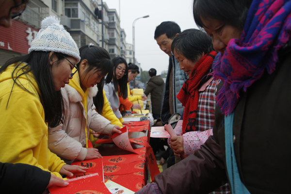 寒冬送暖,腊月传情。2019年1月10日,校区师生共50名志愿者来到茅山镇城盖村为村民免费义诊,免费赠药,赠春联,让群众在家门口得到实惠。
