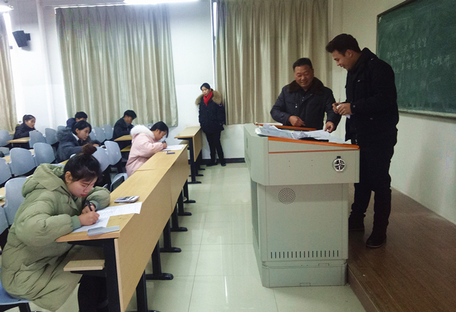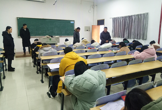 正值学校期末考试阶段,校区管委会高度重视期末考试,对考务工作的各个环节进行督查,并专门成立检查小组,严格巡查考场情况。校区管委会领导带领校区教务办、督导室、办公室、学工办等部门的老师对考场进行了多次巡查。督导室也利用教学监控设备对每场考试进行了视频监控。 巡查中,检查小组主要从考试环境、考场秩序、教师监考、学生应考等方面进行了细致认真的检查,通过巡查发现校区考场秩序井然、考风考纪良好。