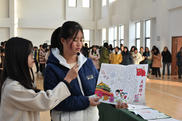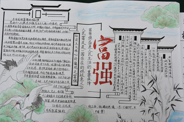 通过前期征集,校区分团委共收到各班级120余幅手抄报作品,经过评比,最终共选出60幅优秀作品在文体中心展出,各班级组织学生前往参观并投票选出十佳作品。展览现场,各参赛选手准备充分,通过演讲的形式介绍了自己作品主题、设计方案等内容。通过手抄报的活动形式,加大了对社会主义核心价值观的学习和宣传,让学生深刻理解以“富强、民主、文明、和谐;自由、平等、公正、法治;爱国、敬业、诚信、友善”为主要内容的社会主义核心价值观的内涵。