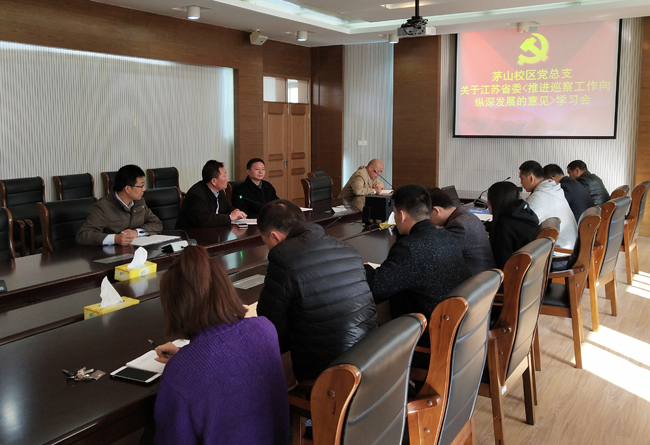 为营造风清气正的良好政治生态,推进基层党组织管党治党工作的常态化,校区党总支于11月28日下午组织学习江苏省委出台的《关于推进巡察工作向纵深发展的意见》。