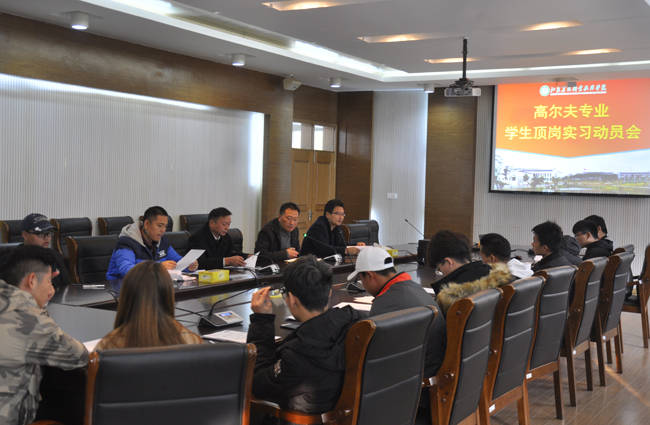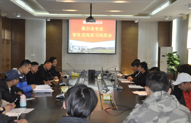 为做好2016级高尔夫球运动与管理专业学生顶岗实习工作,让学生明确实习的目的、意义,引导学生做好实习工作。11月19日下午,校区组织召开高尔夫专业顶岗实习动员大会,校区汪国好主任、戴金平副书记、汤波副主任、孙洪亮老师以及16级高尔夫球运动与管理班全体同学参加了此次会议。