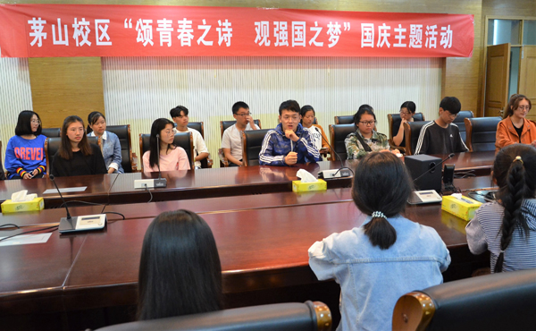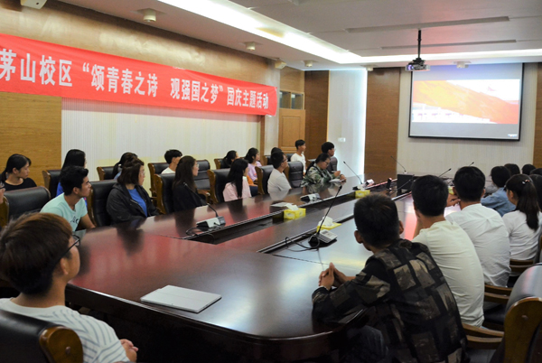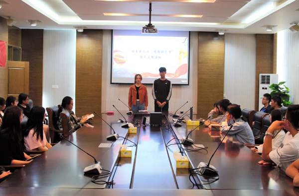金秋十月,举国欢腾。为了激发同学们的爱国热情,提高国庆的喜庆氛围,丰富和繁荣校园文化。9月28日晚,校区分团委在图书馆会议室开展了“颂青春之诗,观强国之梦”主题活动。