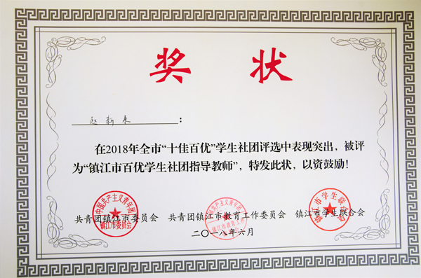 6月8日下午,镇江市2018年十佳学生社团评审会在我院图书馆报告厅成功举办,校区嘉木茶艺社团荣获“镇江市十佳学生社团”和“镇江市百优学生社团”称号、校区朱锦老师和赵新来老师荣获“镇江市百优社团指导老师”称号。 本次评选活动由镇江团市委、镇江市学联共同组织开展,全市7所高校推荐了161个社团参加本次十佳百优评选,仅有20个社团入围十佳学生社团评选。 通过本次镇江市“十佳百优”学生社团评选推进了我校学生社团的提升与进步,营造了比学赶超、互相借鉴的良好氛围,推动了我校学生社团整体水平再上新台阶。