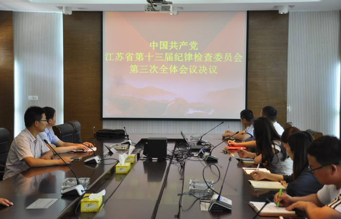 6月6日下午,校区党总支组织全体党员认真学习《中共江苏省第十三届纪律检查委员会第三次全体会议决议》精神。