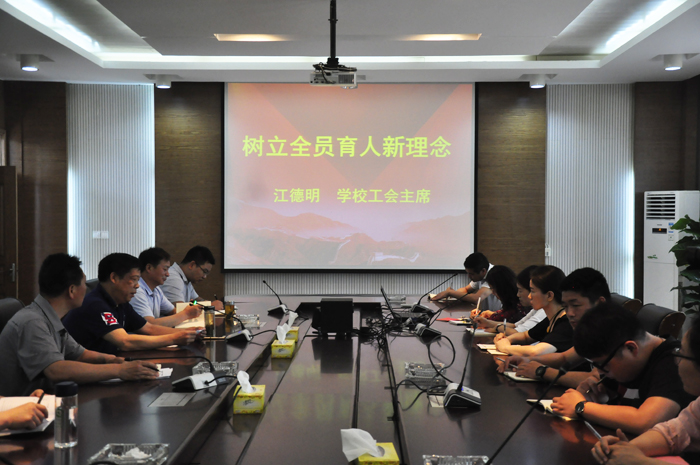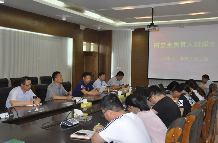 为了深入学习习近平总书记在高校思想政治工作会议上的重要讲话精神,落实《中共中央、国务院印发<关于加强和改进新形势下高校思想政治工作的意见>》,扎实推进高校思想政治教育工作创新与发展。校区党总支邀请到学校工会主席江德明同志于5月30日下午,在校区图书信息中心会议室作《树立全员育人新理念》的思政教育专题讲座,校区党总支全体党员聆听了讲座。讲座由党总支书记汪国好同志主持。