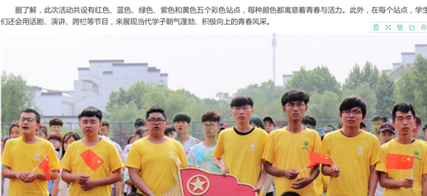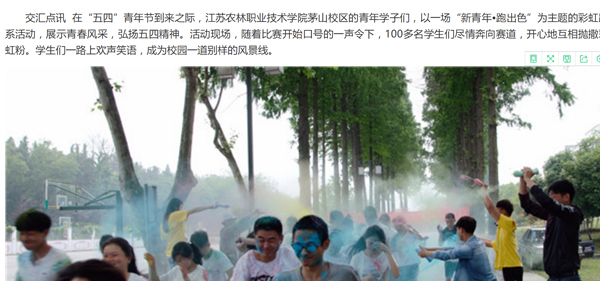 在“五四”青年节到来之际,校区的青年学子们,以一场“新青年•跑出色”为主题的的彩虹跑活动展示青春风采,弘扬五四精神。