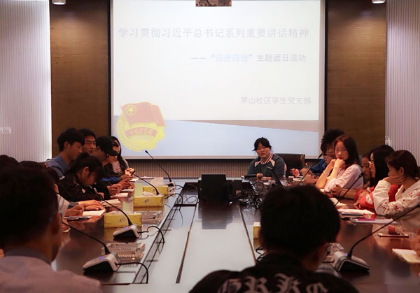 为积极响应党的十八大以来习近平主席在不同场合发表的系列重要讲话,增强大学生对学习宣传贯彻讲话精神的重要性、必要性、战略性的认识,更加自觉地以讲话精神武装青年学生头脑、指导团支部学习工作实践、推进各项工作开展,4月26日晚7点,由校区学生党支部书记朱锦老师主讲的“讲四进、促四信”主题团日活动在图书馆会议室成功举行,会议共有30名入党积极分子参加。