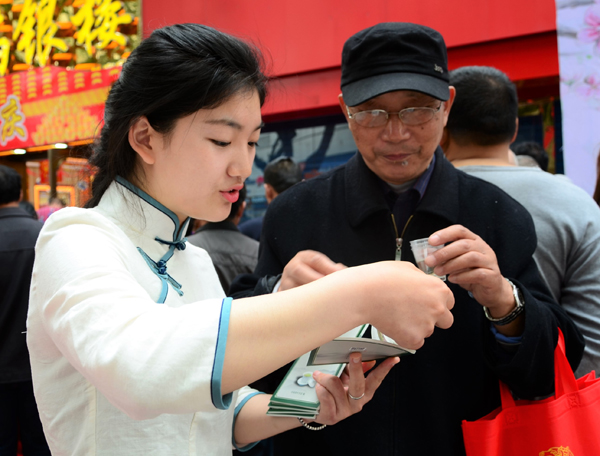 为倡导“茶为国饮”,普及茶知识弘扬茶文化,营造“知茶、爱茶、饮茶”的氛围,响应中国茶叶学会的号召,4月21日,茶艺与茶叶营销专业学生走进句容社区开展“全民饮茶日”活动。 此次活动共分两个会场,主会场设在江苏茶博园,分会场设在句容市区步行街,吸引了广大市民和留学生驻足、共品一杯中国茶。第一次学生们走上街头,分发全民饮茶日宣传册,向广大市民介绍茶知识、展示茶魅力,将所学所知所感与广大市民分享,既巩固了专业知识,又能将所学专业技能、人际交往技能在实践中得到锻炼,弥补了课堂学习的不足。