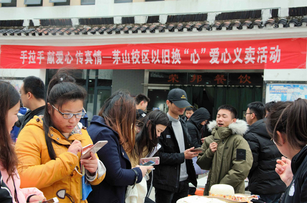 3月21日至22日,校区分团委在食堂门口举办了“手拉手 献爱心 传真情——茅山校区以旧换‘心’爱心义卖活动。”“小小维修服务”小分队携手创业园店铺,加入到义卖队伍中来,并将活动期间所获利润慷慨献出。师生们用实际行动践行社会主义核心价值观,弘扬雷锋精神,尽己所能帮助更多的人。