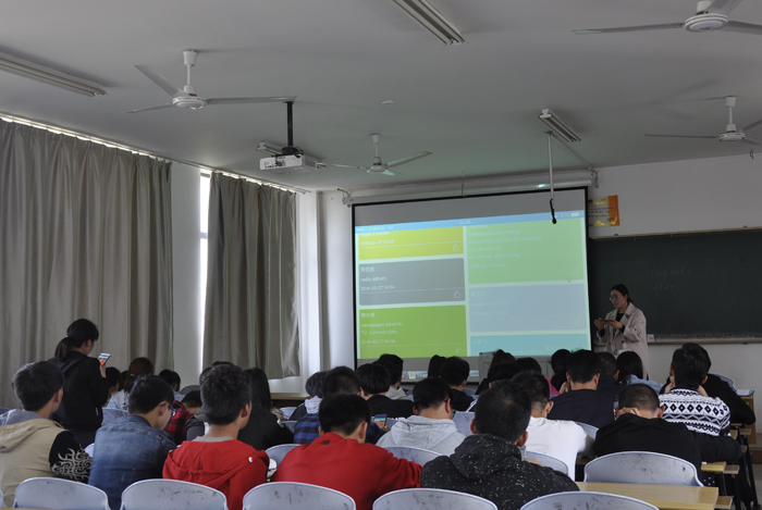 在课堂上,张老师采用云课堂教学,利用手机点名、手机airplay镜像、手机参与问答等信息化教学手段,完成课堂教学任务。整个课堂气氛活跃和谐,学生学习轻松,愉快。参加听课的老师对张老师采用这种新教学方法和手段,产生极大的兴趣,表示受益匪浅。