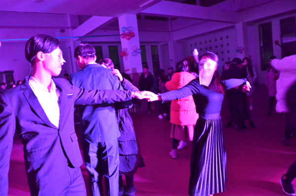 此次舞会在一支激情的爵士舞中拉开了序幕。舞者凭借精湛的舞艺,惊艳全场,赢得在场同学们的赞叹与掌声。紧接着,自由的舞池寻伴、共跳华尔兹舞等环节以及“镜像反应”、“吸管运输”等游戏调动了现场气氛,引爆在场同学心中的热情。一首吉他弹唱《夜空中最亮的星》更是将舞会推向了高潮。最终,舞会在浪漫温情的舞曲旋律中落下帷幕。