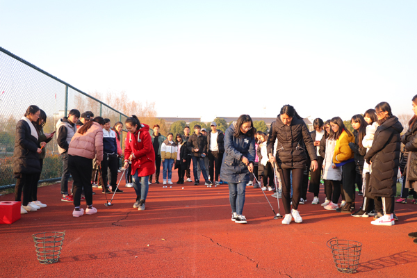 为丰富同学们的课余生活,让大家近距离感受高尔夫运动的魅力,12月21日下午,16级高尔夫运动与管理班在校区足球场举办了“Young 我们不一样 We are江苏农林高尔夫”活动,吸引了180名同学前来参与。