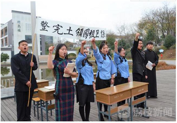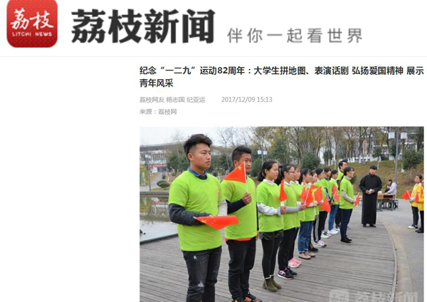 荔枝新闻报道校区“一二九”运动82周年纪念活动。