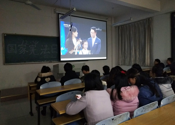 12月3日下午4:30分,17茶艺与茶叶营销班组织学生自主收看中央电视台社会与法治频道播出的《第二届全国学生“学宪法讲宪法”活动团体总决赛》,并于12月4日上午组织学生登录普法网观看和参与直播活动,同步开展宪法学习教育。