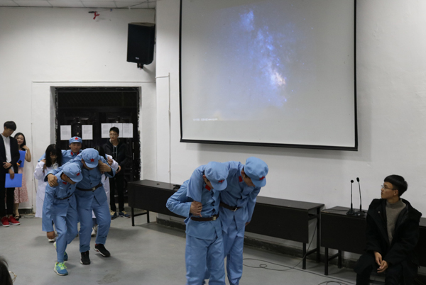 11月24日下午,校区学生党支部在学术报告厅开展“红色行 铭初心,十九大 再出发”主题活动。同学们总结了十九大精神学习的心得,大家纷纷表示,作为一名当代大学生,越发感觉到肩上的责任重大,表示一定要认真学习,用自己的实际行动为祖国的强大添砖加瓦。 接下来,同学们通过丰富的节目表达对伟大祖国的赞颂和热爱。情景剧《回忆红色岁月》再现了中国共产党不断壮大的艰难历程。从表演者凝重的表情中可以体会大家对先辈的敬仰和钦佩。小合唱《我的中国心》、集体朗诵《我的祖国》使全体学生激情满怀,唤起了同学们不忘初心跟党走的决心。相信同学们对习近平“新时代精神”有了更深的认知,在学校这个大舞台上历练自我,为祖国的不断强盛贡献自己的一份力量。