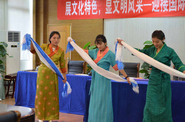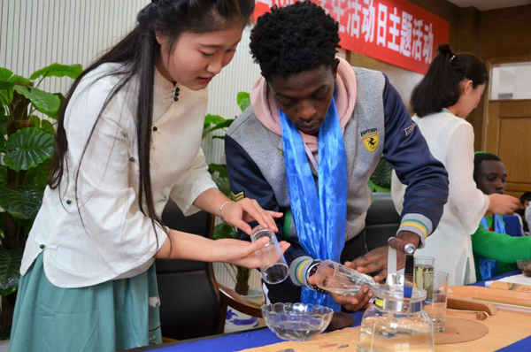 交流活动在维族女孩曼妙的舞姿下徐徐展开;惟妙惟肖的相声表演让在场的同学捧腹大笑;藏族舞蹈为大家呈现了不一样的柔美,藏族姑娘们更为留学生们献上了哈达以表真诚与祝福。清远悠扬的笛子声、深情动听的马头琴弹奏、从容典雅的古筝演奏更是让外国友人大开眼界。最后,带领着在场外国友人一同体会“茶滋味”、领会笔墨韵味。