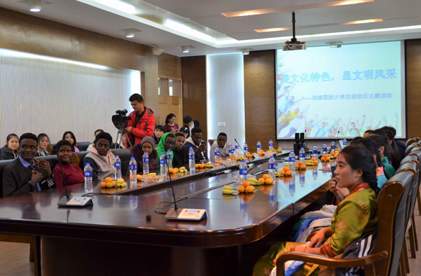 为增进文化交融,促进学校各民族同学与在校留学生的友好交往,在国际大学生节来临之际,校区分团委组织留学生代表及各民族学生代表在校区图书馆会议室共同参与“展文化特色,显文明风采”主题活动。