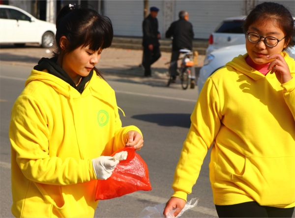在本次活动中,志愿者们与环卫工人同行,一起清理沿路的垃圾。哪里有垃圾哪里就有志愿者的身影,他们不怕累、不怕脏,沿途弯腰在绿化带里认真的拾捡被丢弃的碎纸屑、塑料袋、生活垃圾等。直到中午,志愿者们才“满载而归”。