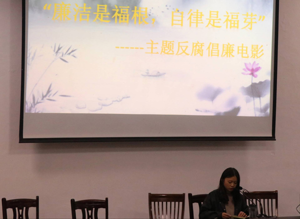 为贯彻落实党的十九大精神,强化党风廉洁教育,同时深化大学生的责任感和使命感,10月30日晚上6点40,校区学生党支部在学术报告厅举办了主题为“廉洁是福根,自律是福芽”的观影活动。