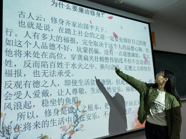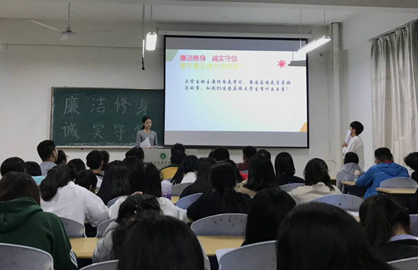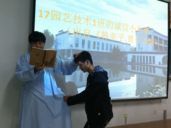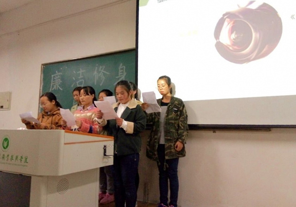 十月,校区农学园艺学院七个班级开展了以“廉洁修身诚实守信”为主题的系列活动。一张张新颖、精致的幻灯片让同学们对廉洁文化有了深入全面的认识。活动中大家积极讨论,踊跃发言。同学们展示了优美动听的诗歌朗诵、意味深长的小品表演、廉洁的历史人物介绍和感人致深的故事。通过此次活动,同学们对廉洁、诚信有了完新的认知,进一步确立了做事“清白廉洁,光明磊落”的时代价值观。