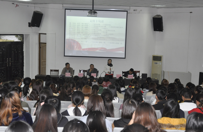 为使2017级新生尽快适应大学生活,充分了解系部、专业以及职业规划,10月11日下午,畜牧兽医学院教师在校区报告厅为新生做了系列知识讲座,畜牧兽医学院副书记陈军、校区副主任汤波、学院高利华教授、学院办公室刘庆新以及分团委书记朱晓宦等参加了此次活动。