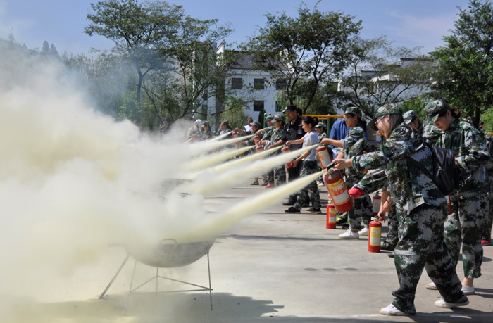 为提高新生的安全防火意识,增强新生在火灾中互救、自救能力,9月28日,校区组织2017级新生,开展了应急逃生疏散演习,并在校区运动场进行了灭火器实操演练。