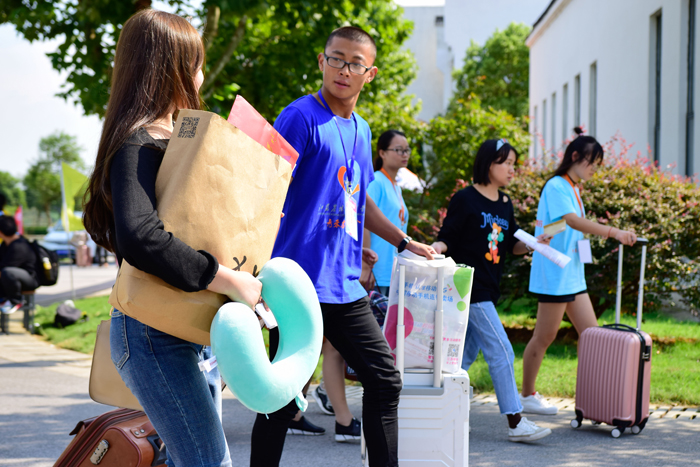 此次迎新工作,校区准备充分,一条条迎新的标语,一张张热情的笑脸,温暖着家长和新生的心。咨询报到组的老师不厌其烦地给新生、家长回答着他们提出的各种问题;志愿者们主动帮着新生拎行李,热情周到的服务让新生尽快消除初来乍到的陌生感;安保、宿管、后勤服务中心也努力做到让新生以最短的时间完成各项手续的办理。为欢迎新生的到来,校区分团委制作了新生辅导员寄语展板、“校园之星”展板,介绍校区在学习、志愿服务、文体等多个领域表现突出的先进学生的事迹,为新生树立榜样,吸引了新生和家长驻足观看。