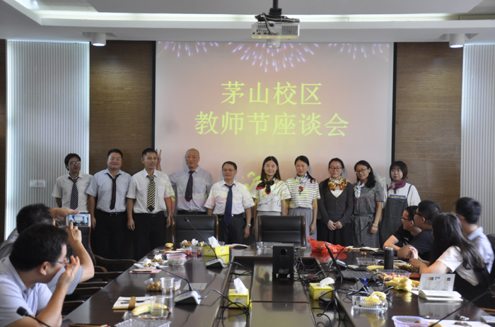 又一个收获的季节硕果飘香,又一个期待的九月祝福飞扬。在秋韵荡漾的日子里,我们迎来了第33个教师节。为此,校区党总支和工会组织教职工召开了教师节座谈会,全体教职员工们欢聚一堂。首先,校区管委会汪国好主任向在座的全体职工致以诚挚的节日问候,祝全体教师节日快乐,并感谢每一位教职工为校区付出的辛勤努力。之后,各位老师也发表了自己从教以来的感言,整个座谈会的气氛庄重而温馨。活动最后,校区茶艺和高尔夫专业学生为老师们送来了卡片祝福,并为老师们打上领带、系上丝巾,以此来表达对老师的爱。