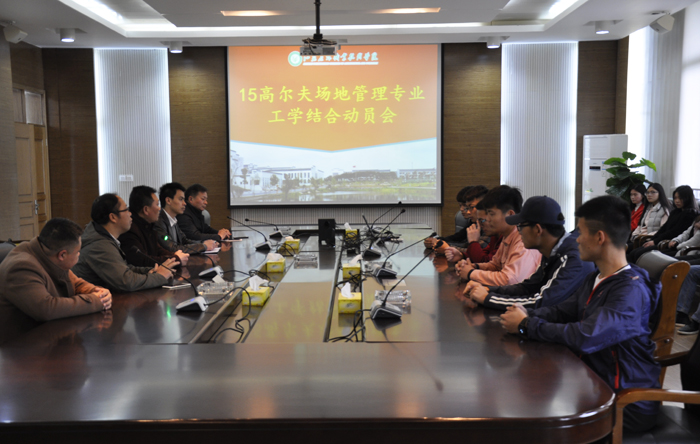 为落实高尔夫场地管理专业“工学结合”人才培养模式改革,紧扣专业特性和市场导向,4月10日下午,校区组织召开了高尔夫专业“工学结合”动员会。校区汪国好主任、戴金平副书记、风景园林系熊伟副书记、高尔夫专业老师以及15级高尔夫班全体学生、辅导员参加了动员会。动员会由高尔夫专业负责人刘南清老师主持。