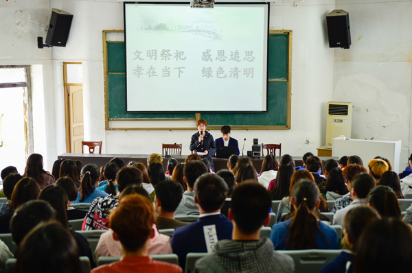 清明节到来之际,为了弘扬民族优秀文化和传统美德,提倡文明祭奠先人,感恩行孝,过绿色清明,3月29日下午,校区分团委联合春城实验学校的师生开展了以“文明祭祀 感恩追思孝在当下 绿色清明”为主题的教育活动。共300余名师生参加。