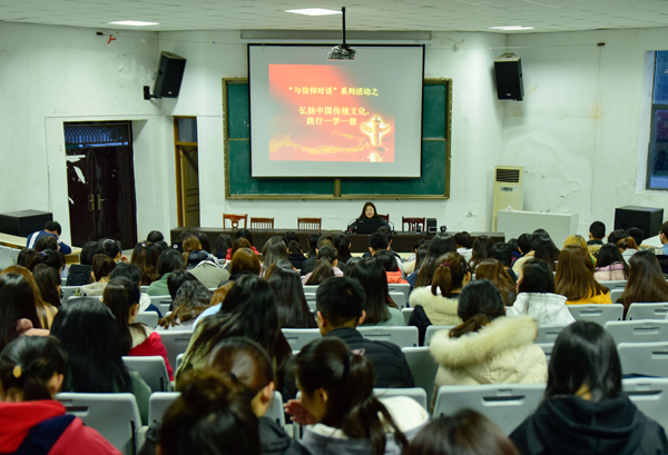 为深入开展“学习总书记讲话 做合格共青团”教育实践活动,校区于3月23日晚6点在报告厅开展了“与信仰对话之传承传统文化”教育主题活动。校区各班团支书、发展对象、入党积极分子共150余人参加。