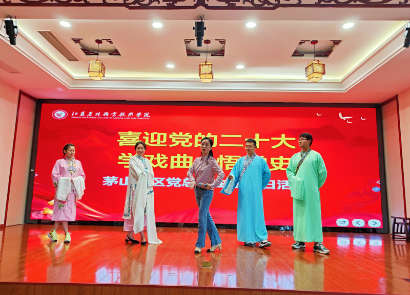 9月22日下午,茅山校区党总支在江苏茶博园习茶苑举办了“喜迎党的二十大‘学戏曲 悟党史’”主题党日活动。
